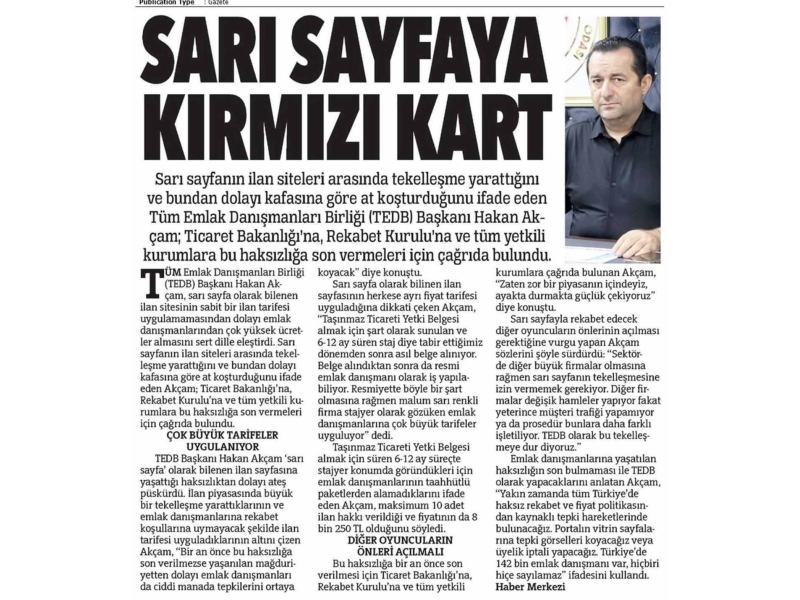 Tedb Genel Başkanı Hakan AKÇAM ; Sarı Sayfa tekel oldu ve kimse dur demiyor.!