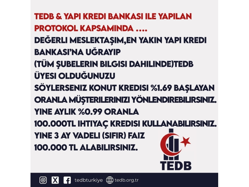 TEDB & Yapı Kredi Bankası ile yapılan protokol kapsamında......